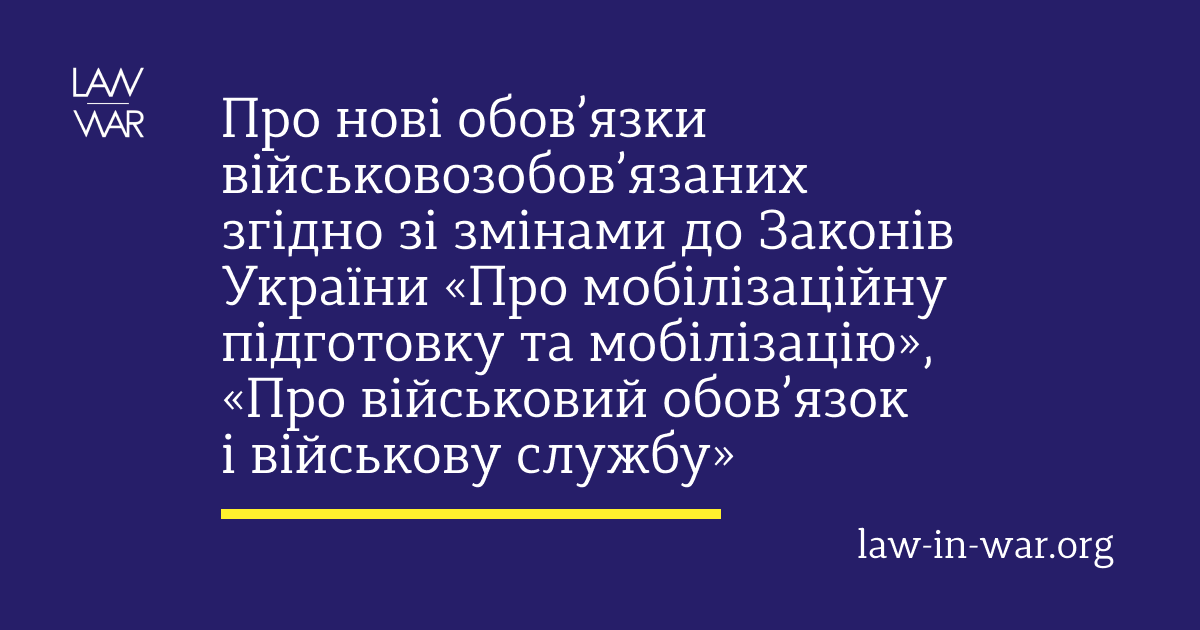 Про нові обов’язки військовозобов’язаних згідно зі змінами до Законів України «Про мобілізаційну підготовку та мобілізацію», «Про військовий обов’язок і військову службу»