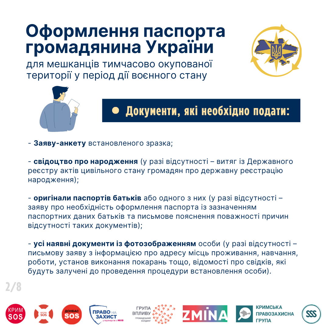 Повнолітні громадяни України, які проживали на тимчасово окупованій території і не оформлювали паспорт громадянина України, мають змогу зробити це на підконтрольній Уряду України території.