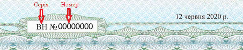 Сформований в ЄДЕБО документ має одну літеру та дві цифри в серії та шість цифр у номері.
