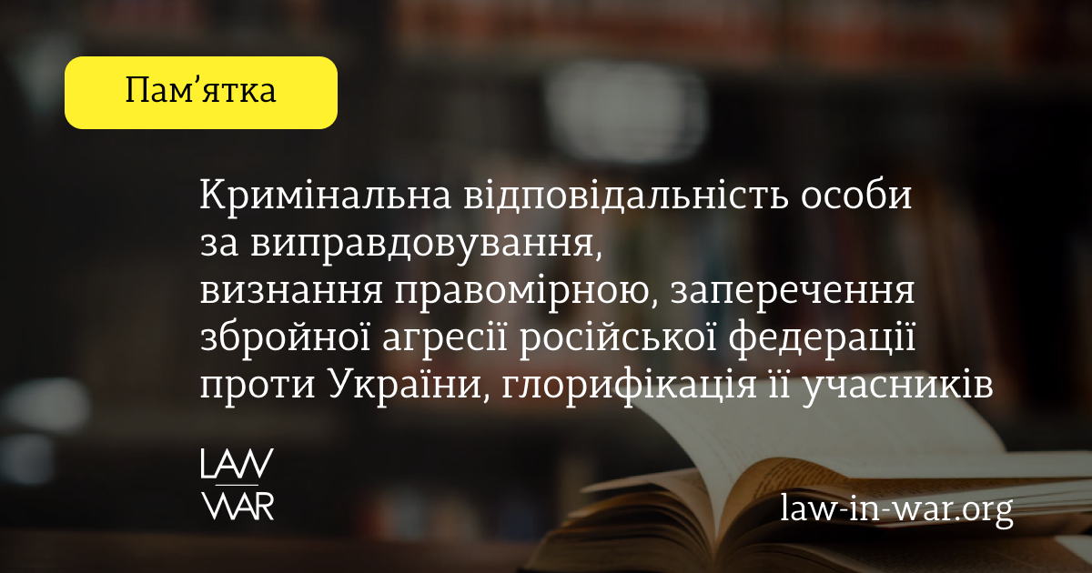 ПАМ’ЯТКА: Кримінальна відповідальність особи за виправдовування, визнання правомірною, заперечення збройної агресії російської федерації проти України, глорифікація її учасників (стаття 436-2 КК)